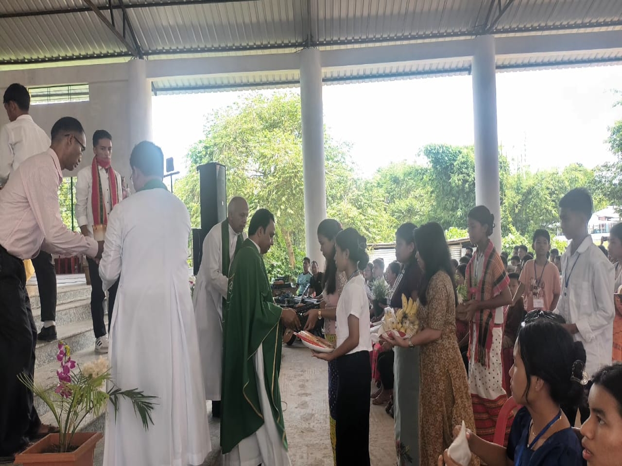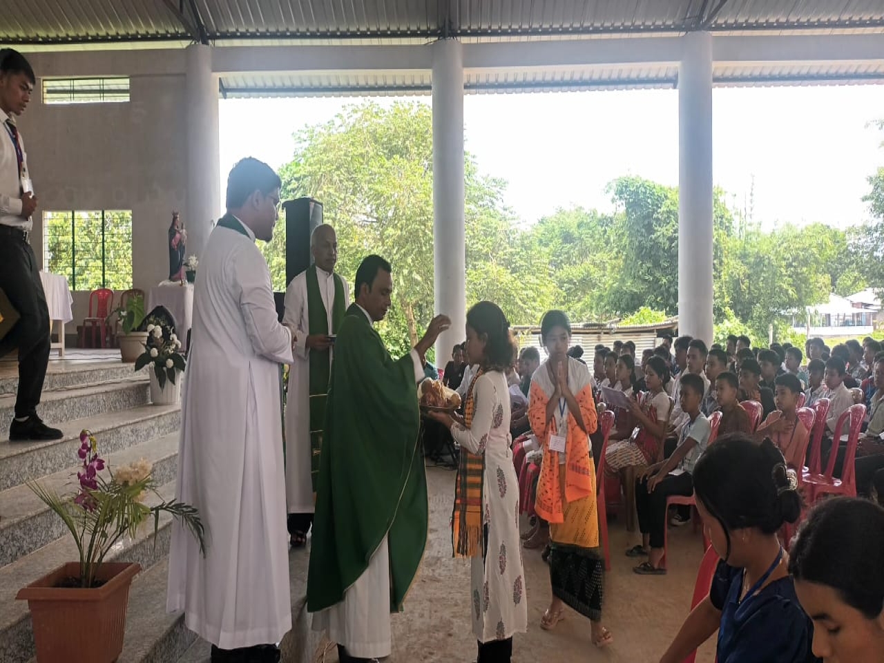 The weekend was marked by five enriching sessions on Catholic faith and teachings, delivered by eminent speakers including Fr. Christopher, Fr. Remol Marak, Fr. Nicholas Sun, Sr. Peaceful, Ms. Alphonsa Molsom, Fr. Juel Ekka (celebrated the Mass on the second day) Bro. Alexius Condpan, Mr. Abhiram Debbarma, Mr. Bapan Debbarma, Mr. Mahendra Debbarma and Ms. Nanda Bhakti Molsom. These sessions provided the young participants with valuable insights on how to live their faith with joy, commitment, and responsibility.