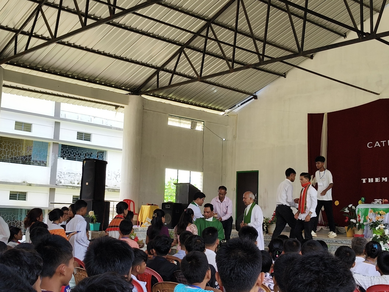 The event witnessed the enthusiastic participation of over 350 Catholic students of Classes V–XII along with Catholic teachers. Significantly, students from 19 Catholic parishes of Tripura also joined, making the gathering a rich and vibrant expression of faith and unity. The entire programme was coordinated by Fr. Remol Marak SDB, Fr. Nicholas Sun SDB, and Fr. Jitendis SDB along with the VSDB sisters of Nabasardar and Bishramganj whose hard work and dedication paved the way for the success of the event.