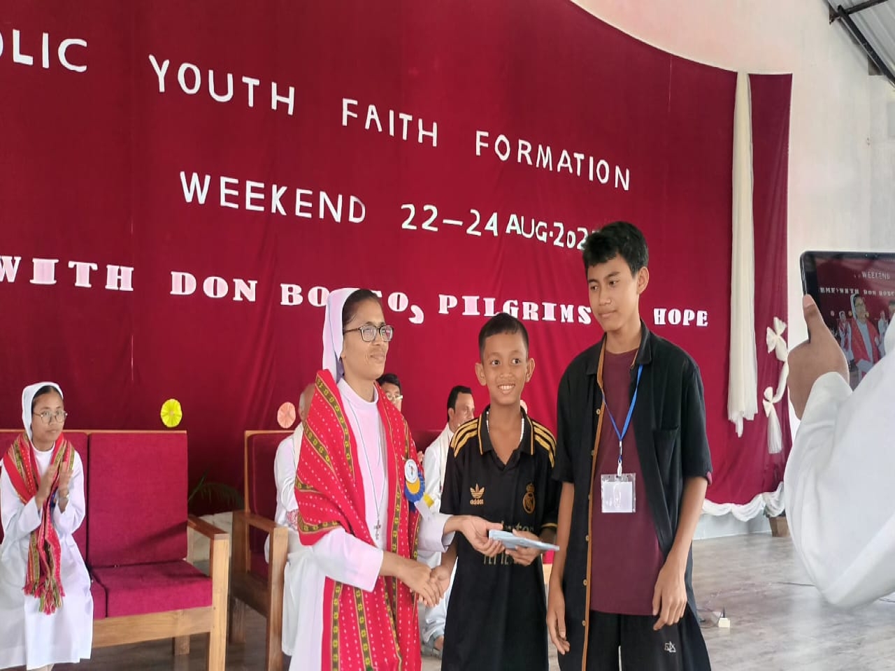 The Faith Formation Weekend concluded on 24th August with a solemn Eucharist presided over by Fr. Babu Stephen SDB, followed by a valedictory function. The event was graced by Fr. Sebastian Palatty SDB, Fr. Dinesh Narzar SDB, Fr. Nicholas Sun SDB, religious sisters, brothers, staff, and students.
