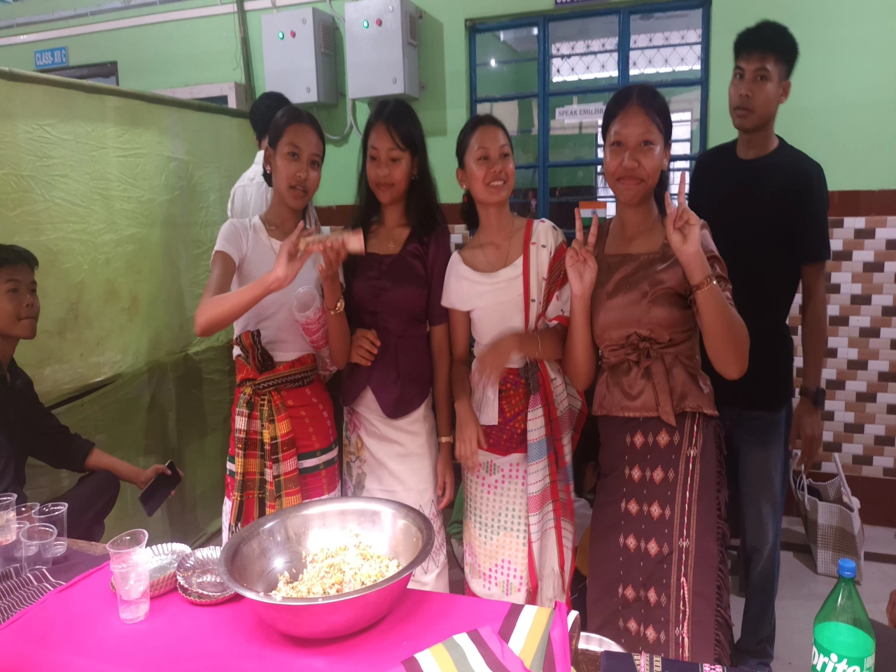 The traditional attire worn by the students added a splash of colour and cultural pride to the entire celebration. Alongside the food stalls, students also entertained the gathering with songs and dances, creating a lively and festive atmosphere. The stalls themselves were beautifully decorated with bamboo, traditional fabrics, and colourful designs, making them highly attractive.