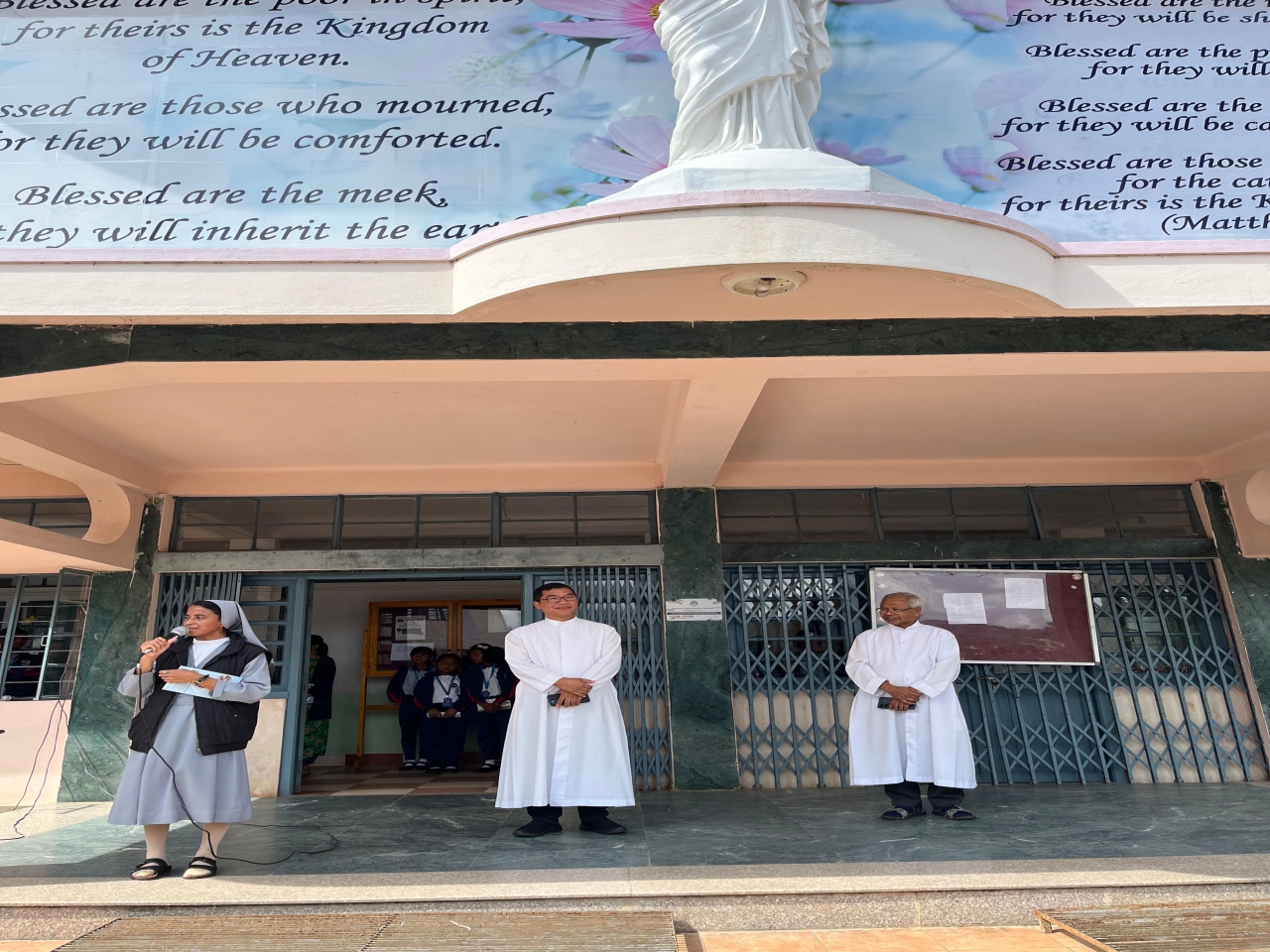 The day began with a solemn assembly in the school courtyard, attended by Rev. Fr. Marius Thongni, SDB, the Parish Priest, Rector, and Secretary of the School, Sr. Catherine Sutnga, the Principal,Rev. Fr. Carmel Myrthong, the Vice Principal, the teachers and the students. In his address to the students, Fr. Zosiama spoke with warmth and conviction on the Preventive System of Education of Don Bosco, built on the principles of reason, religion, and loving kindness. He encouraged the students to grow in discipline, responsibility, and respect, while nurturing a spirit of compassion and faith in their daily lives. His words served as a reminder of the Salesian tradition of holistic education that forms not only the mind but also the heart and character of the young.