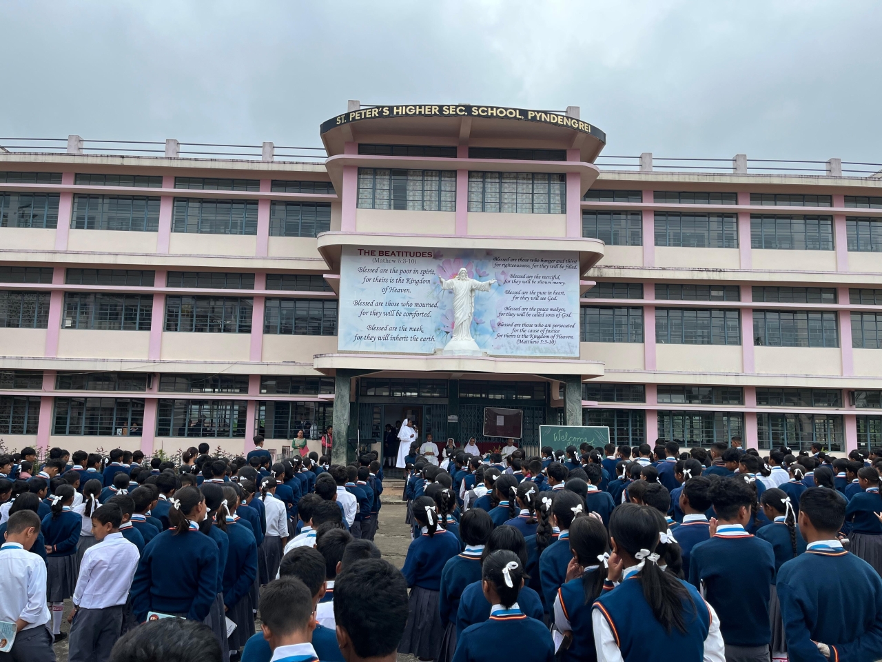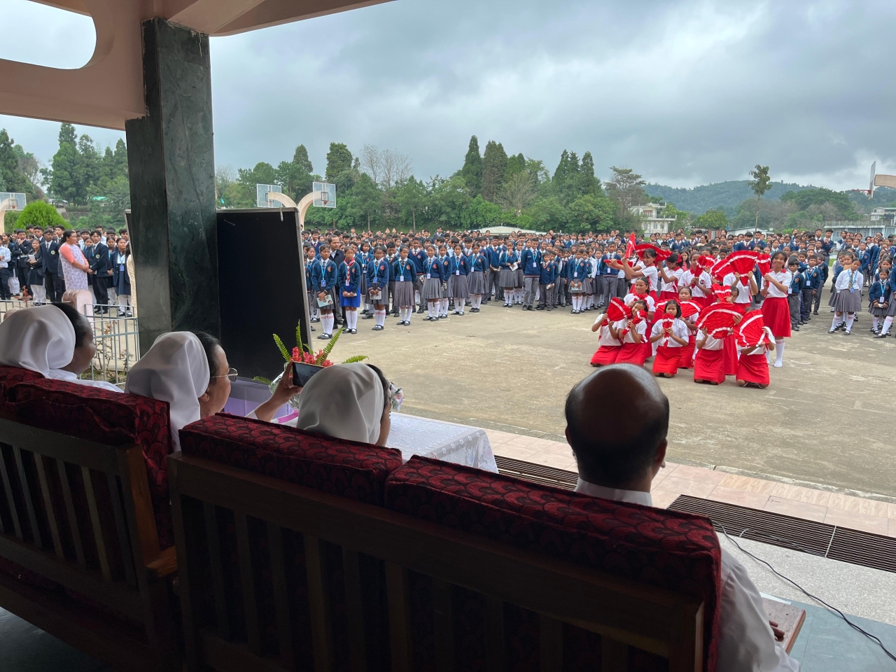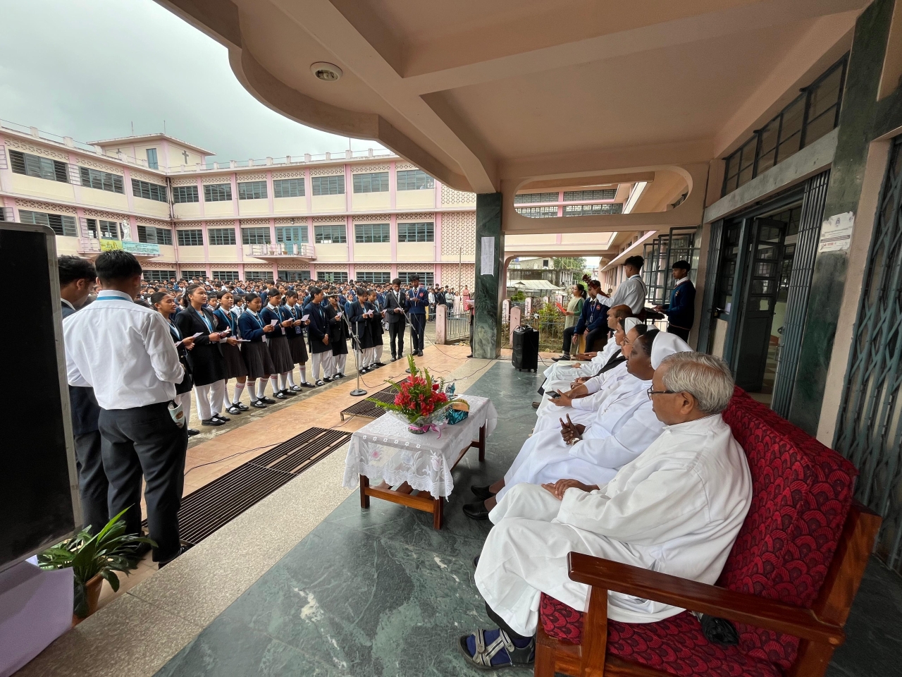 The gathering took place at the school assembly ground, in the presence of distinguished guests and the school community. Among those present were Fr. Marius Thongni, SDB, the Rector and Parish Priest, Fr. Carmel Myrthong, SDB, the Vice Principal, Sr. Bahun Wahlang, FMA, the Superior of St. Peter’s Convent, Sr. Catherine Sutnga, FMA, the Principal of the school, along with all the teachers and students.