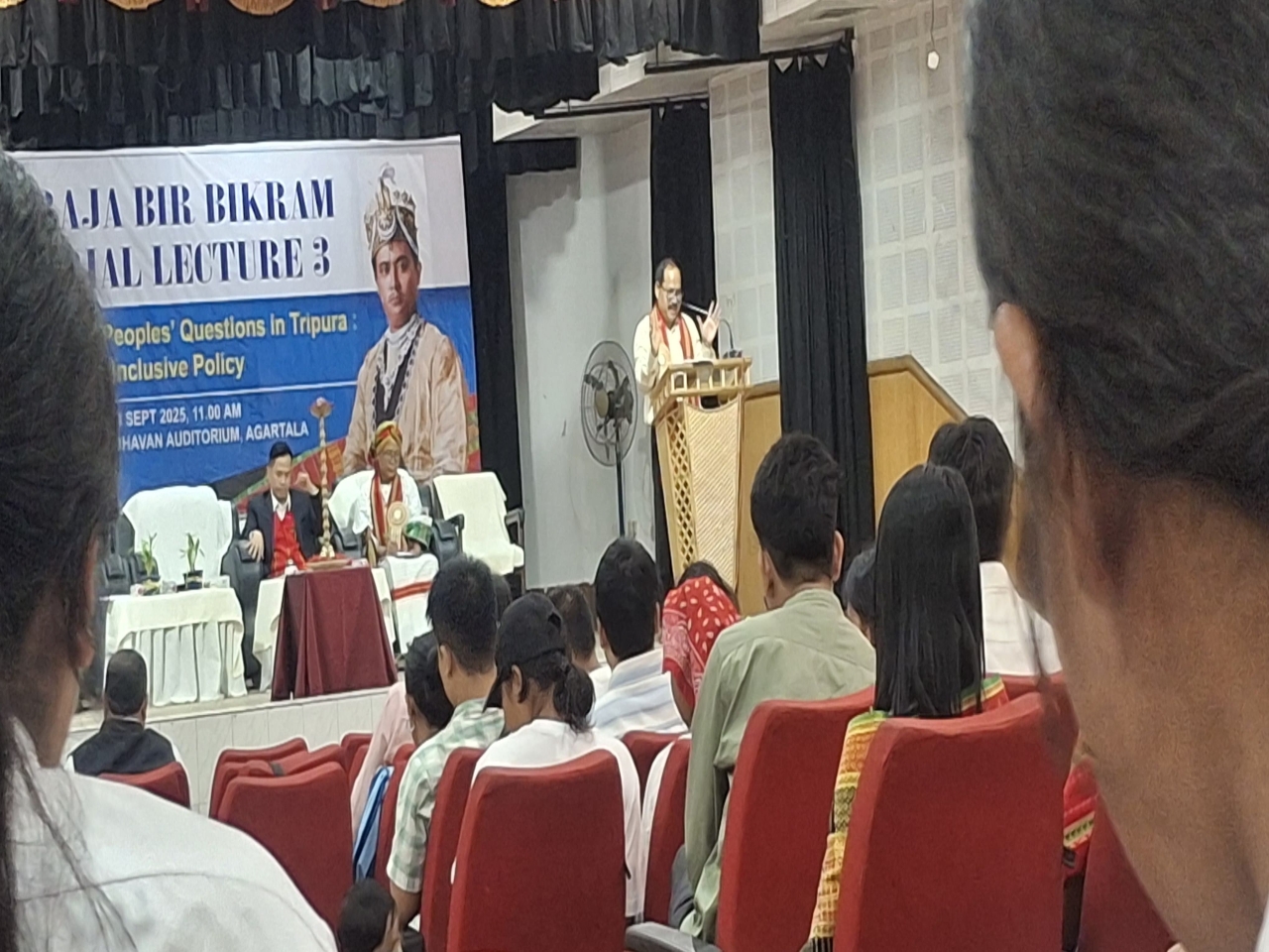 The session was centered on the Maharaja Bir Bikram Memorial. The keynote address was delivered by Dr. Biswaranjan Tripura, Assistant Professor at the Tata Institute of Social Sciences, Mumbai, on the theme: “Revisiting Indigenous Peoples’ Questions in Tripura: Towards Inclusive Policy.”